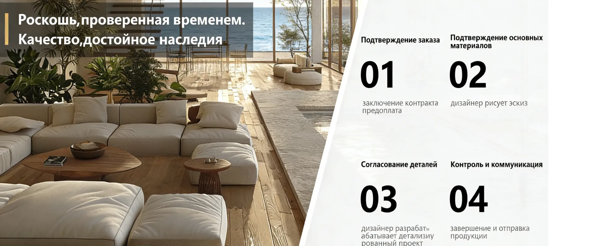 Общий дизайн мебели - 25-летний опыт и система производства делают каждое изделие и каждую деталь совершенными. Мы стремимся создавать безупречную мебель на заказ для самых взыскательных российских клиентов. Основанная в 1999 году как небольшая студия, наша компания быстро выросла и стала синонимом высококачественной кастомизации. В 2010 году мы успешно вышли на европейский рынок и специализируемся на удовлетворении российского спроса на «эксклюзивную роскошь».