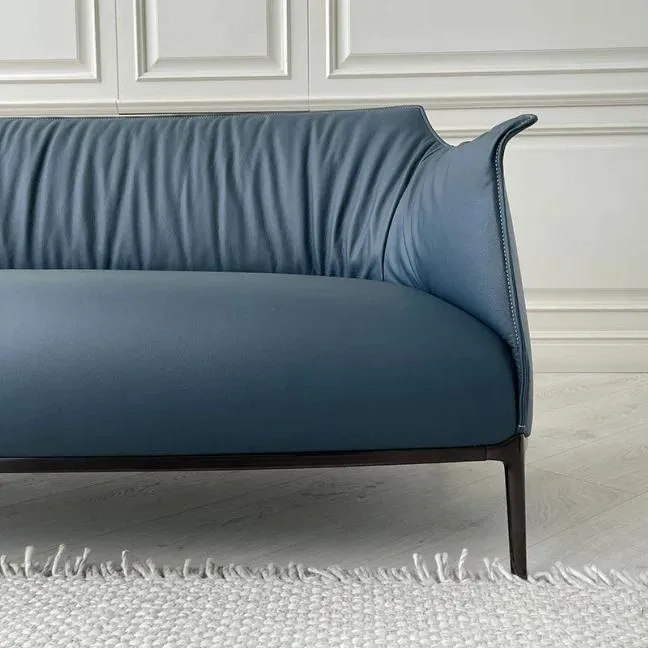 Обивка из кожи голубого цвета. Основание серого цвета «пушечный металл».