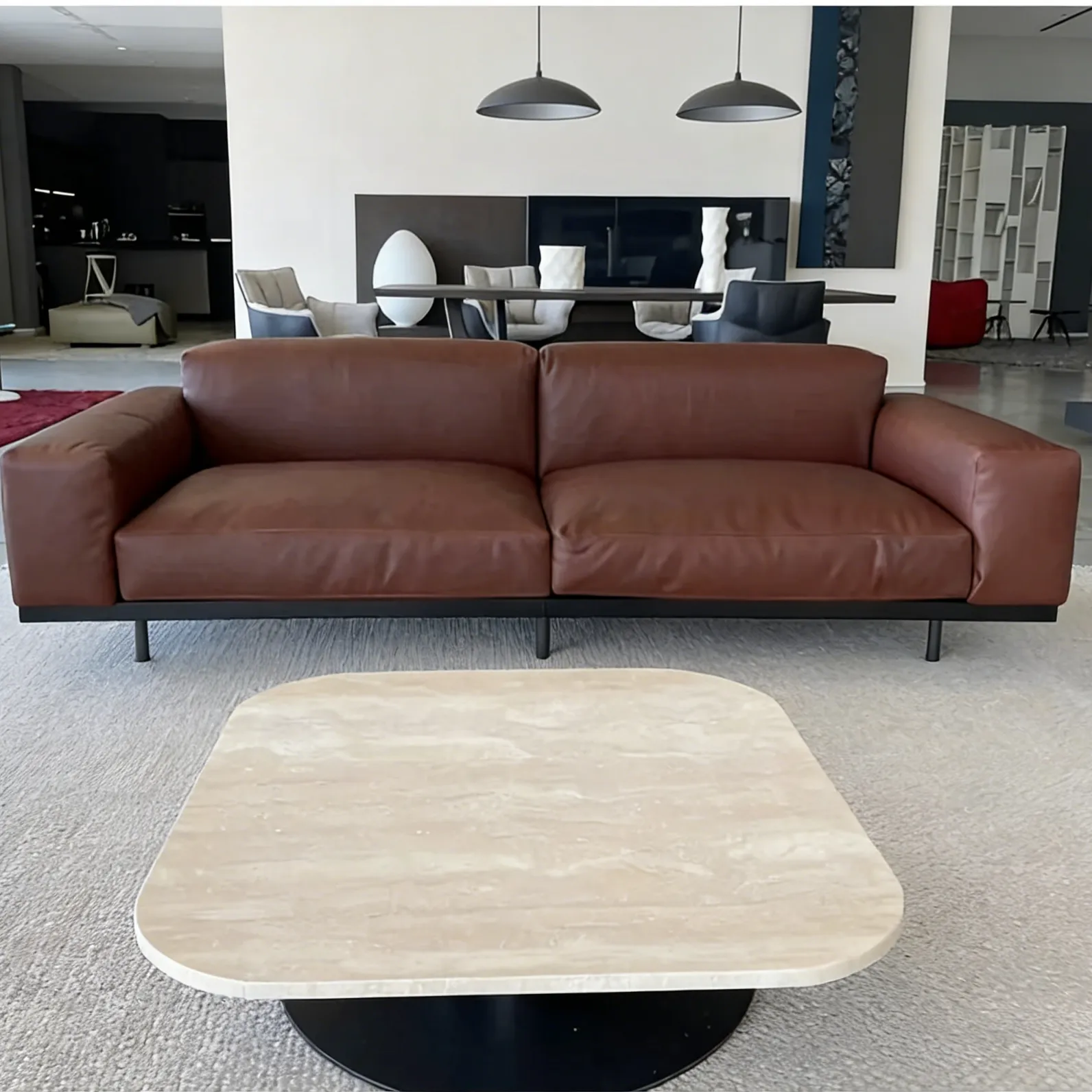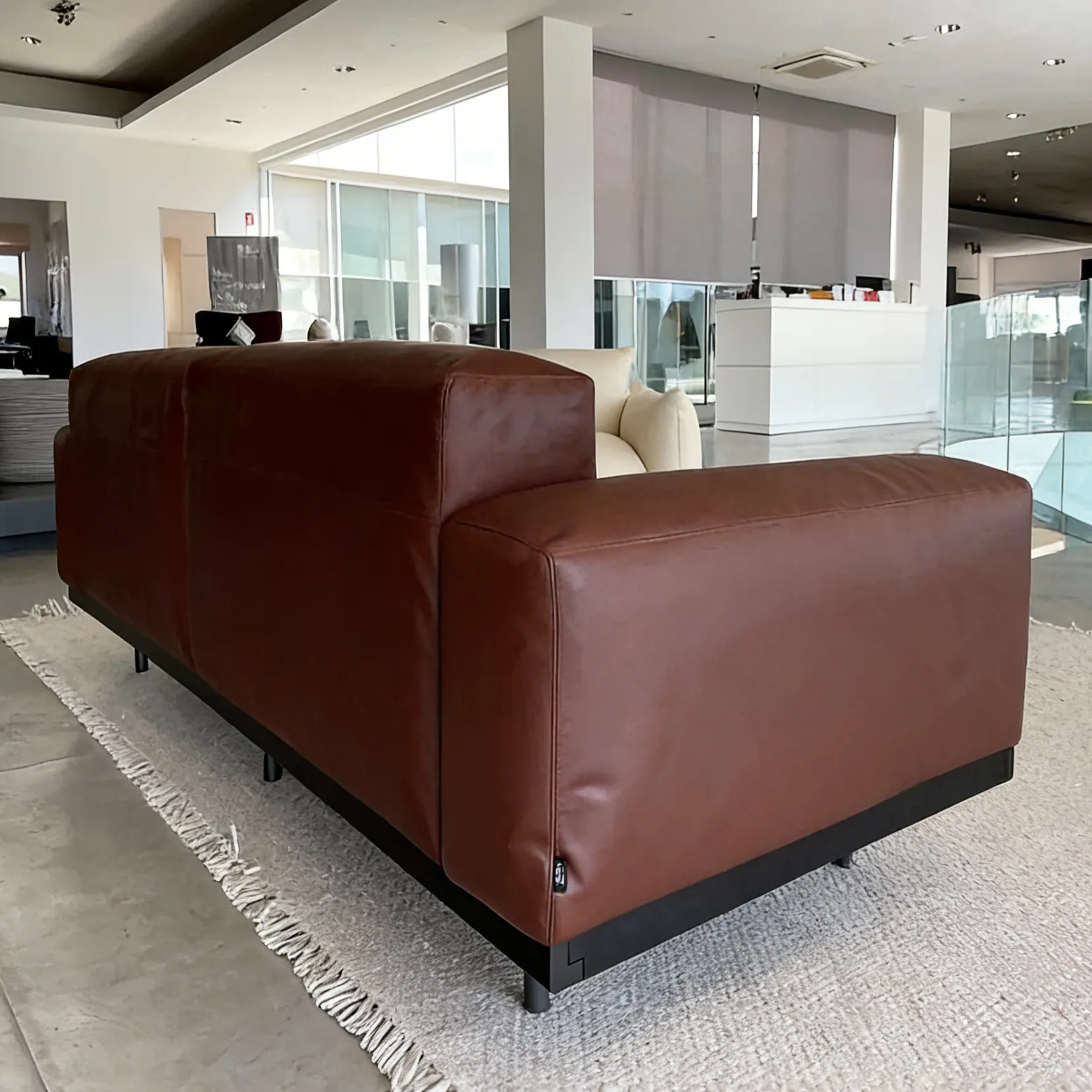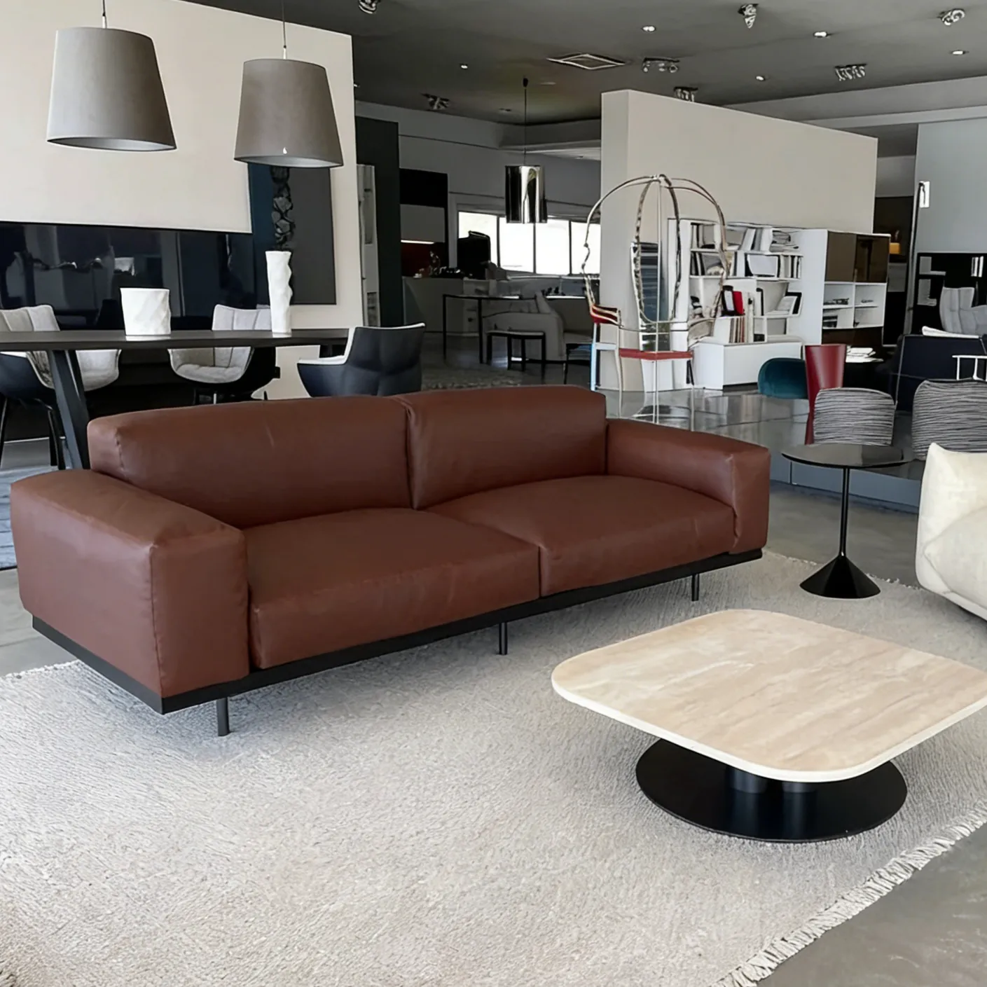 Диван Naviglio отличается металлической основой, покрытой графитовым лаком, и элегантной коричневой кожаной обивкой.
