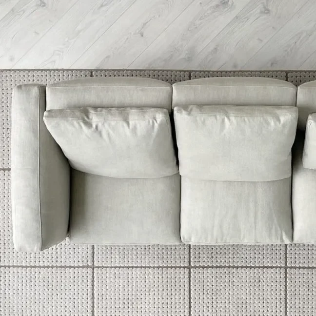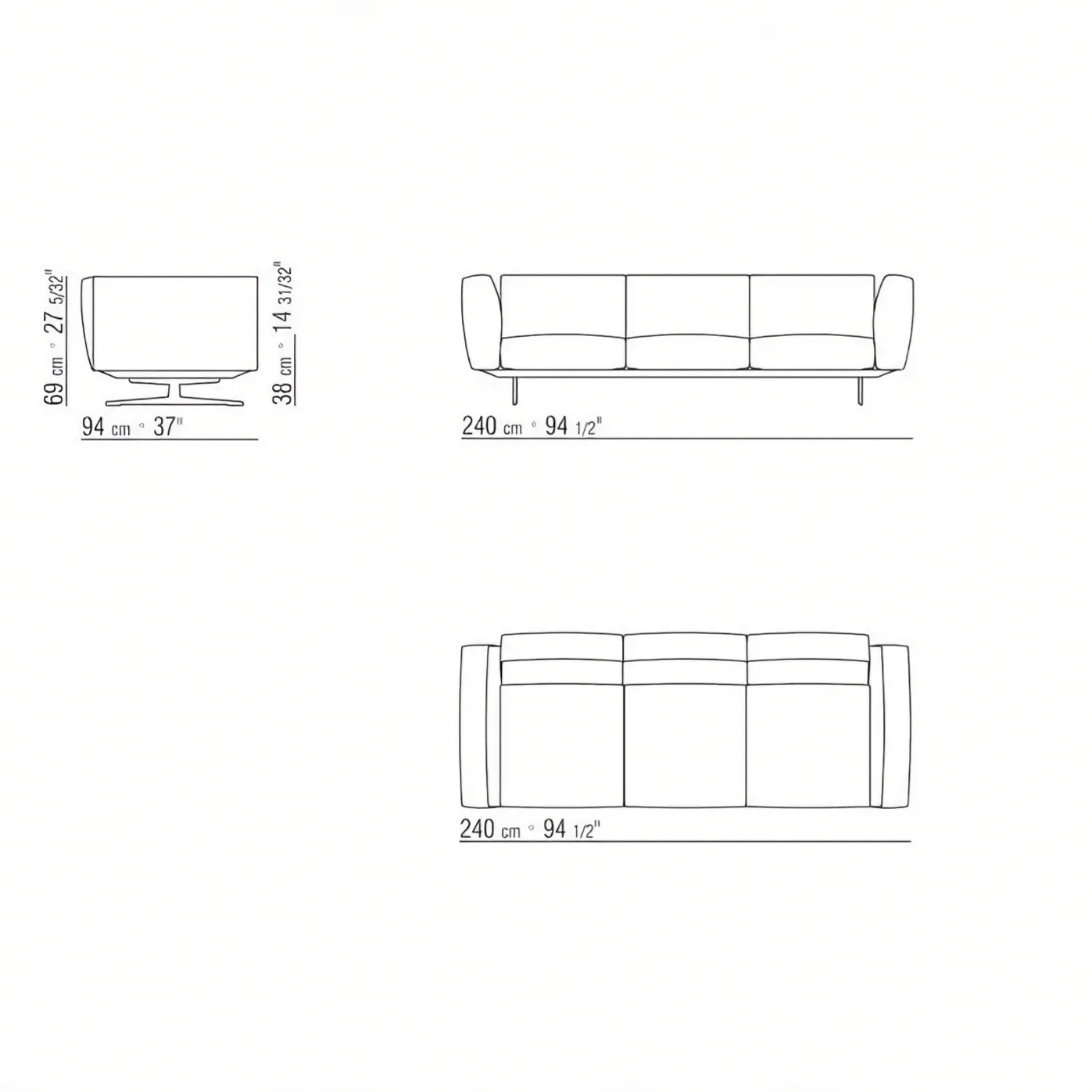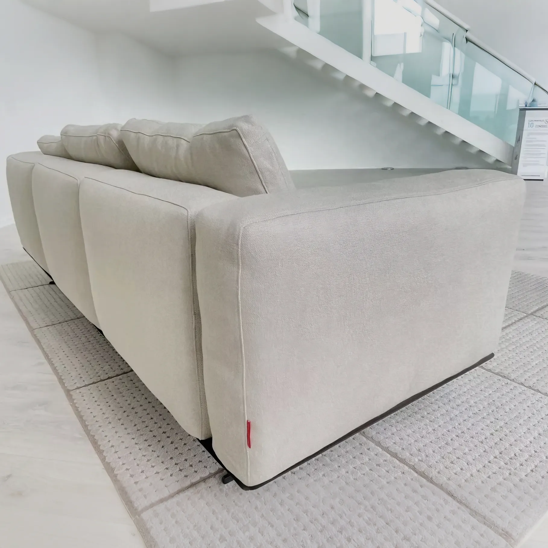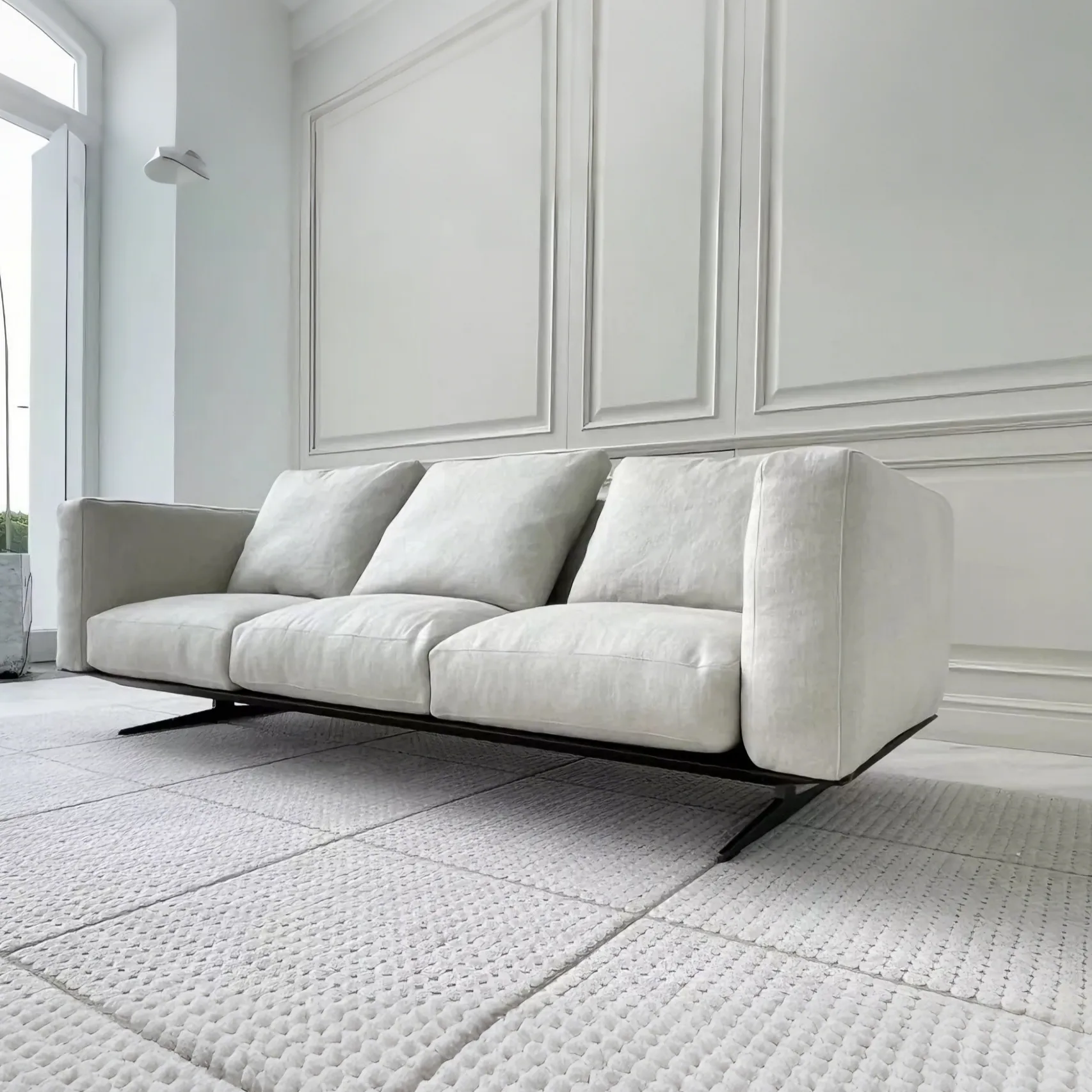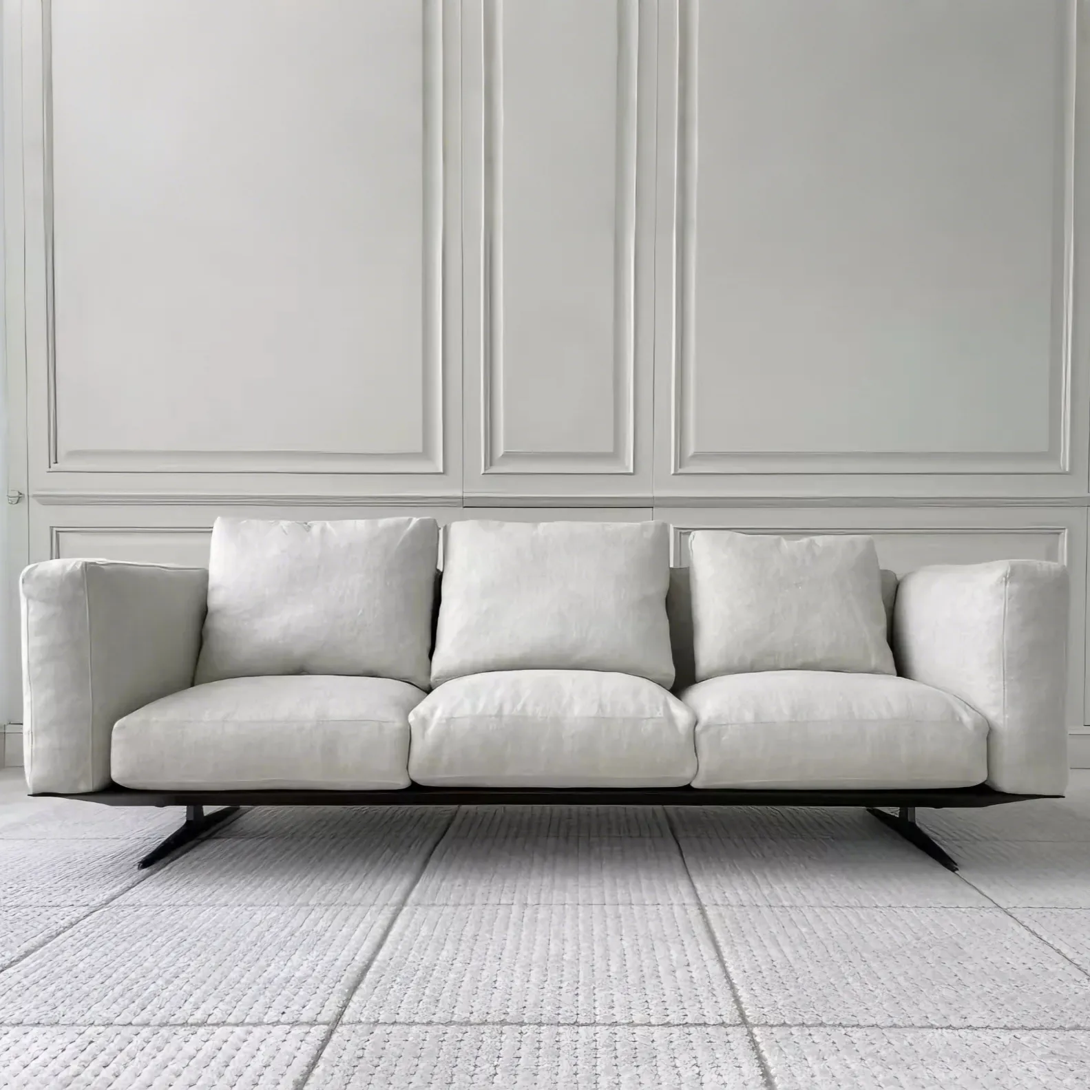 Дизайн этого дивана, как следует из названия, отличается мягкостью и большим размером подушек. Чтобы компенсировать массивность формы, диван опирается на тонкие металлические ножки, которые помогают обтекать силуэт.