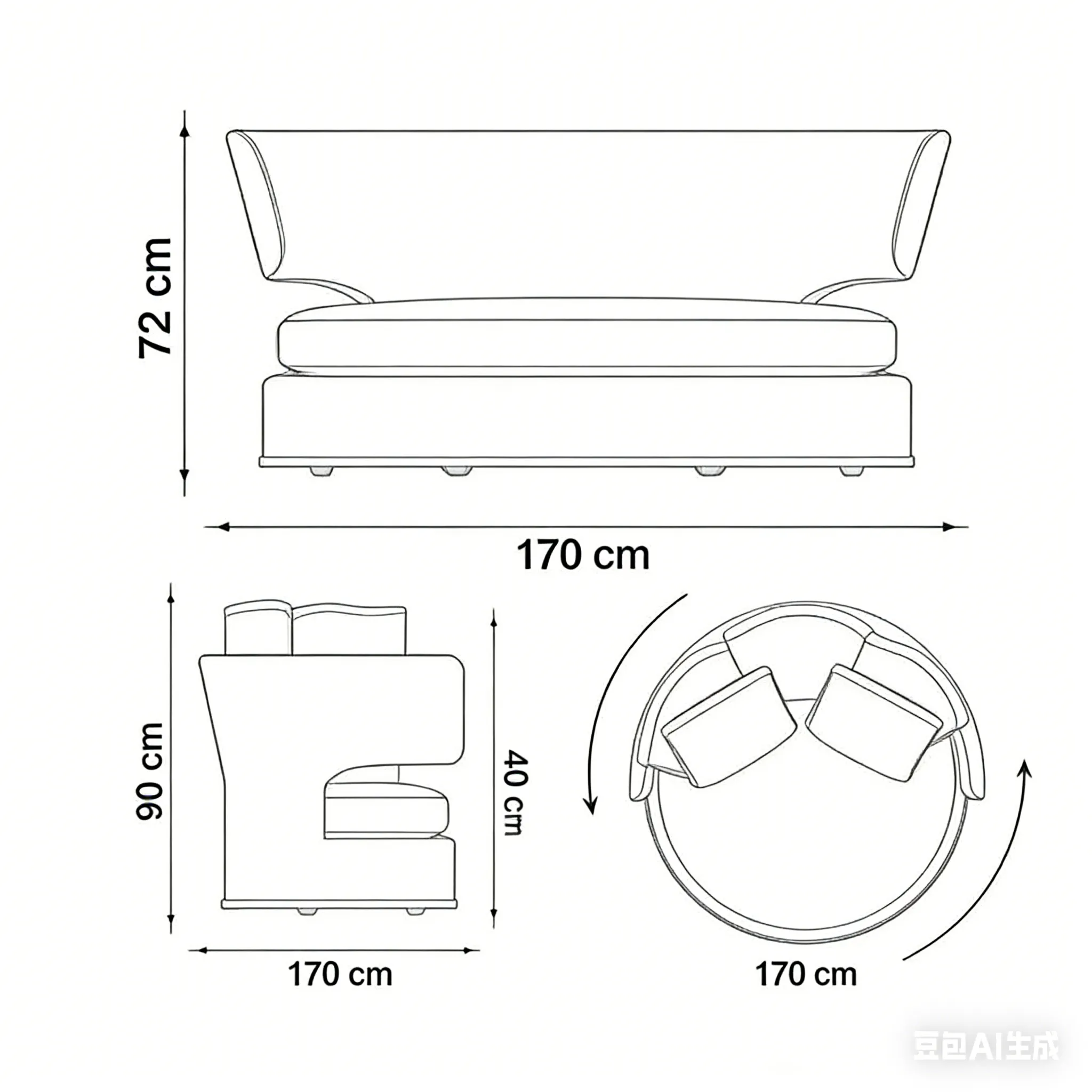 Размеры: ø170x73 см.
