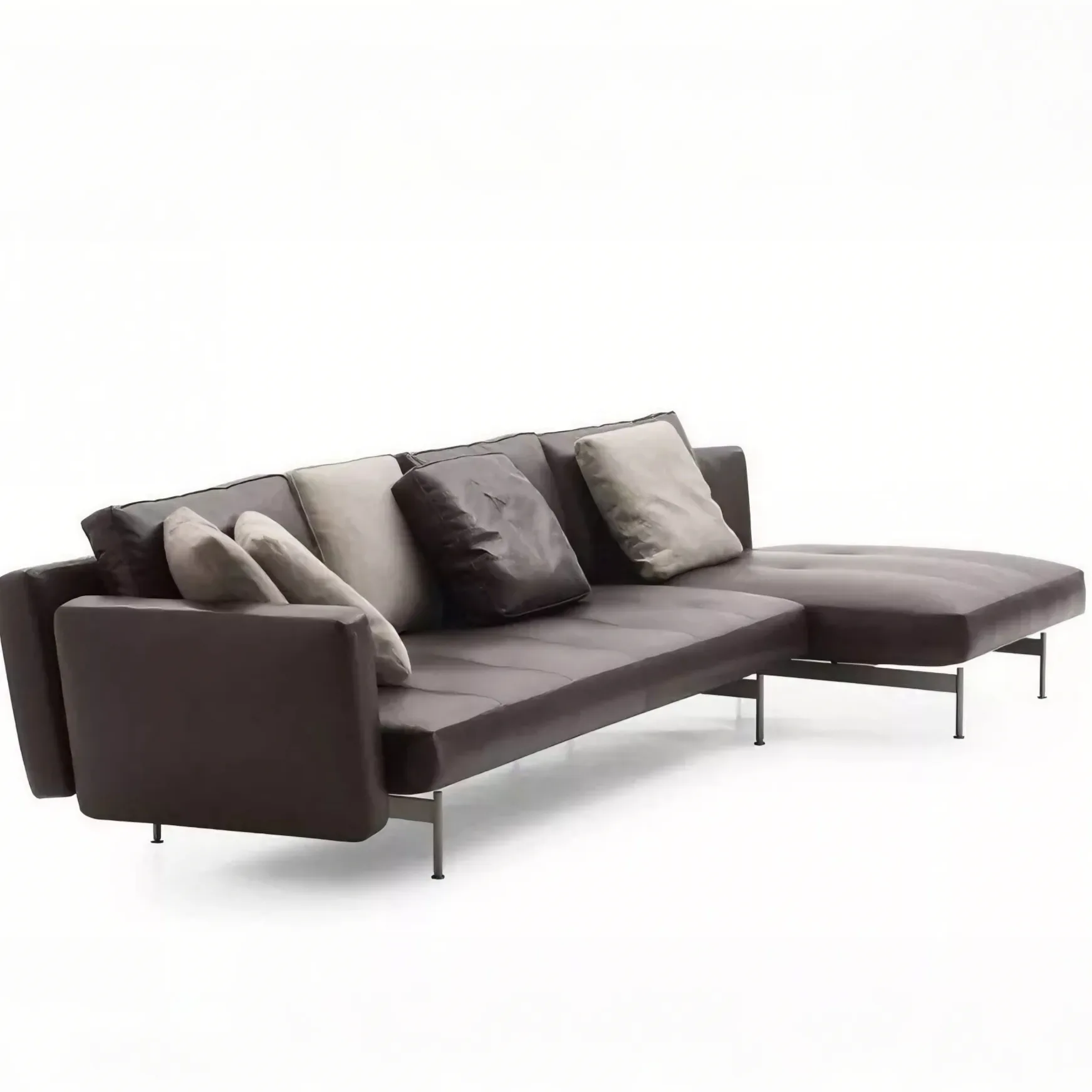 Дизайн начинается с современной системы сидений, отличающейся тщательно продуманным формальным балансом. Сиденья трех размеров (175, 210 и 270 см) с обволакивающими или линейными спинками и подлокотниками различных размеров гармонично сочетаются, создавая диван, адаптированный к пространству и вкусу заказчика. Систему дополняет элемент шезлонга (105 x 135 см), который может использоваться как завершающий элемент линейной композиции, а благодаря более объемной спинке и подлокотникам может использоваться самостоятельно или в паре с другим шезлонгом, образуя диван с глубокой посадкой. Детали подушек и опорного основания придают дизайну лёгкость. Подушка сиденья имеет изысканную модульную строчку с шагом 35 или 45 см; спинные подушки двух размеров обрамлены профилированными кантами. Опорное основание системы состоит из перекрёстных брусьев со скруглёнными стальными ножками, соединёнными перекладиной. Вся конструкция покрыта оловянной лаковой краской. Система также включает диван-кровать (150 x 210 см) — единственный в коллекции B&B Italia, использующий сиденья и спинки других диванов. Съёмные правый или левый подлокотник могут служить изголовьем, когда благодаря сдвигу сиденья и откидыванию спинки диван превращается в односпальную кровать.